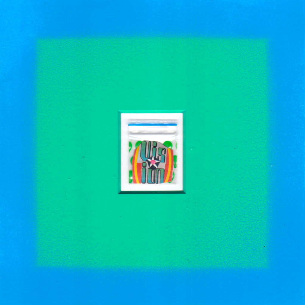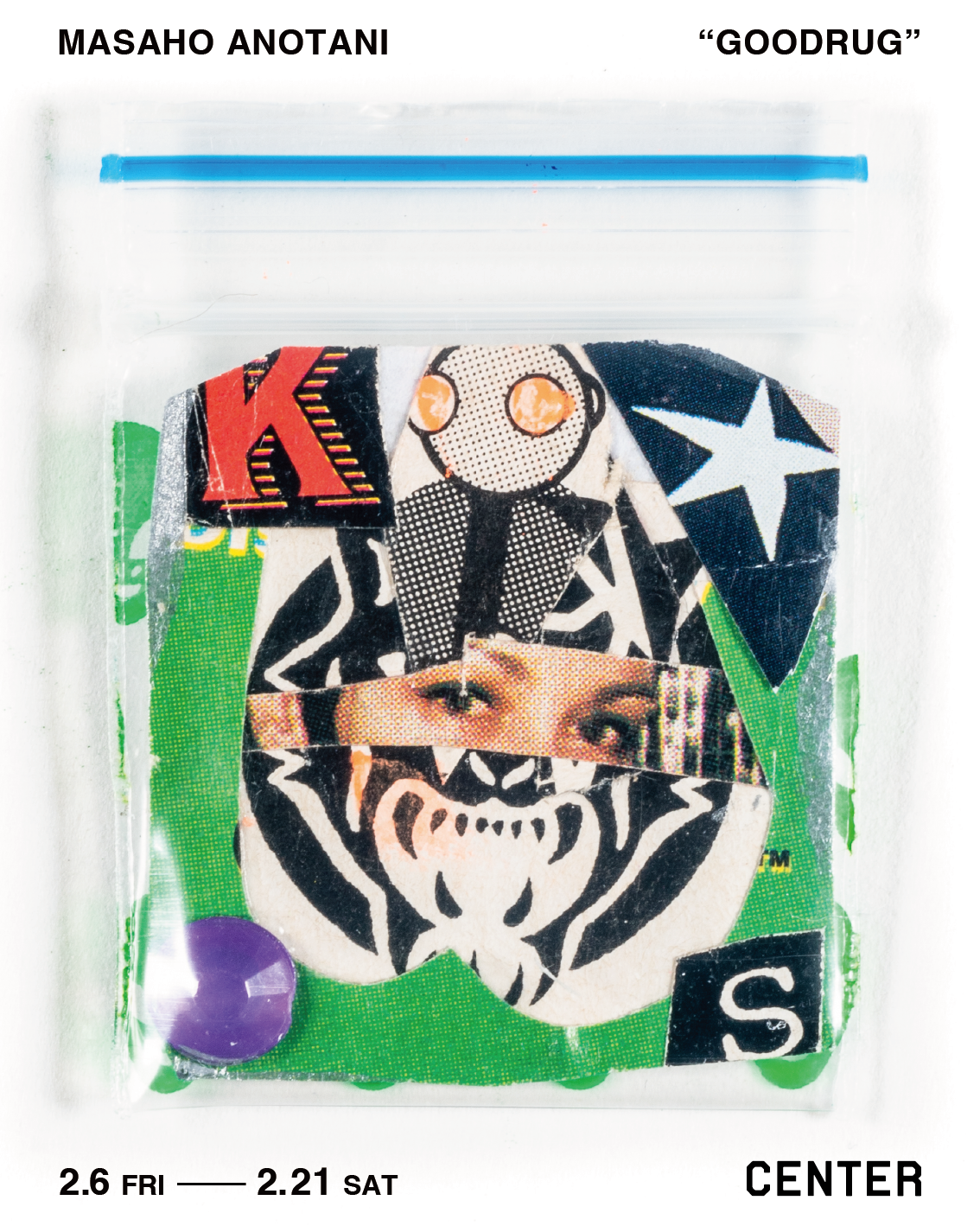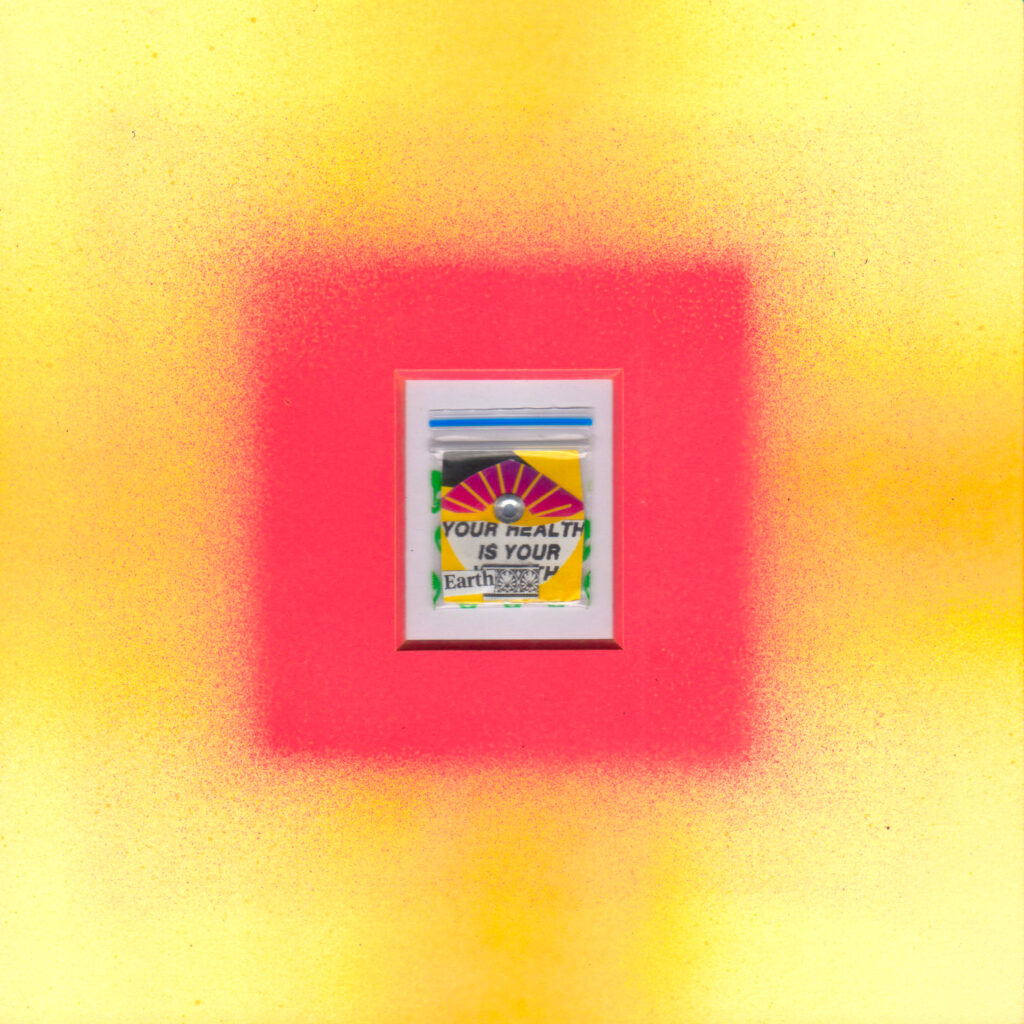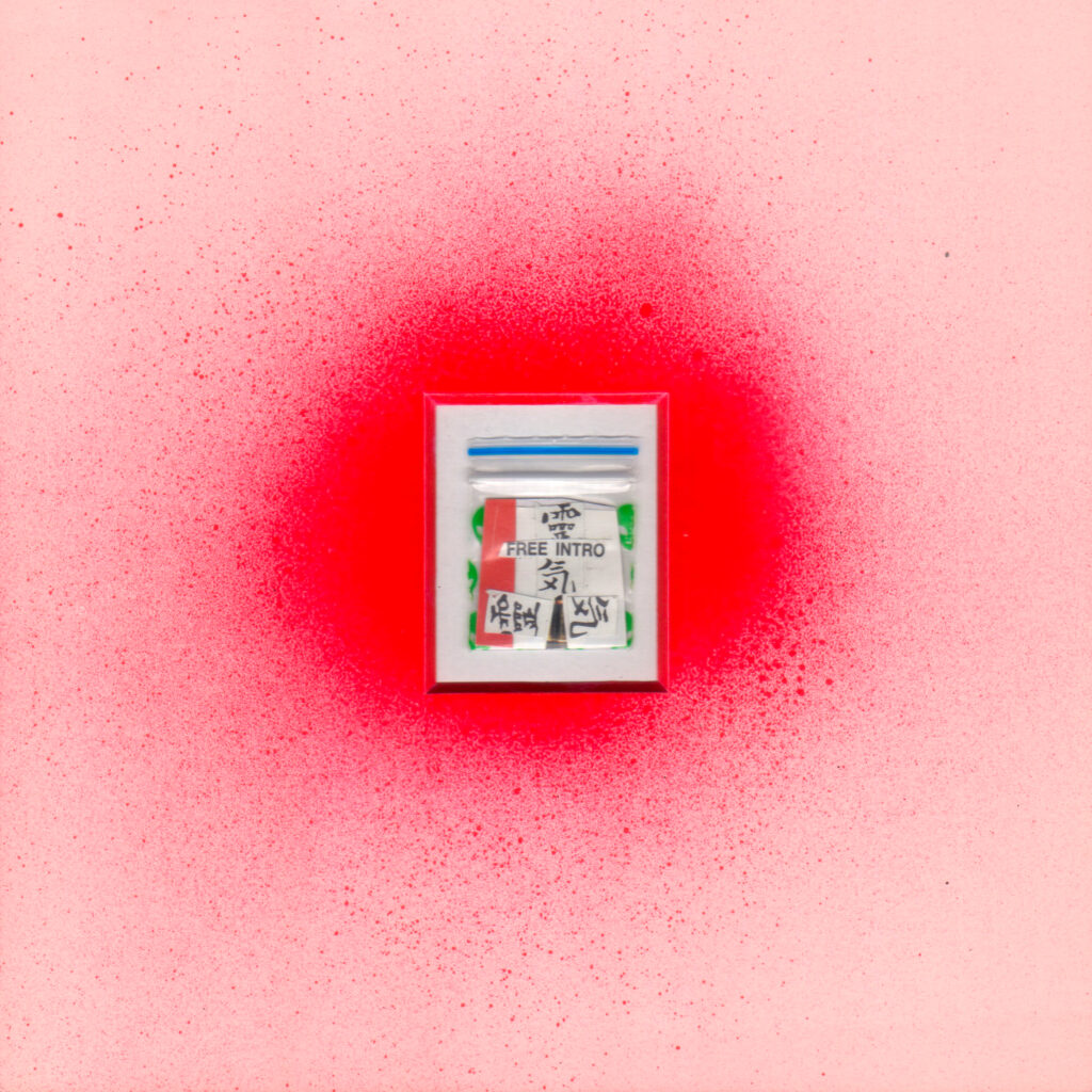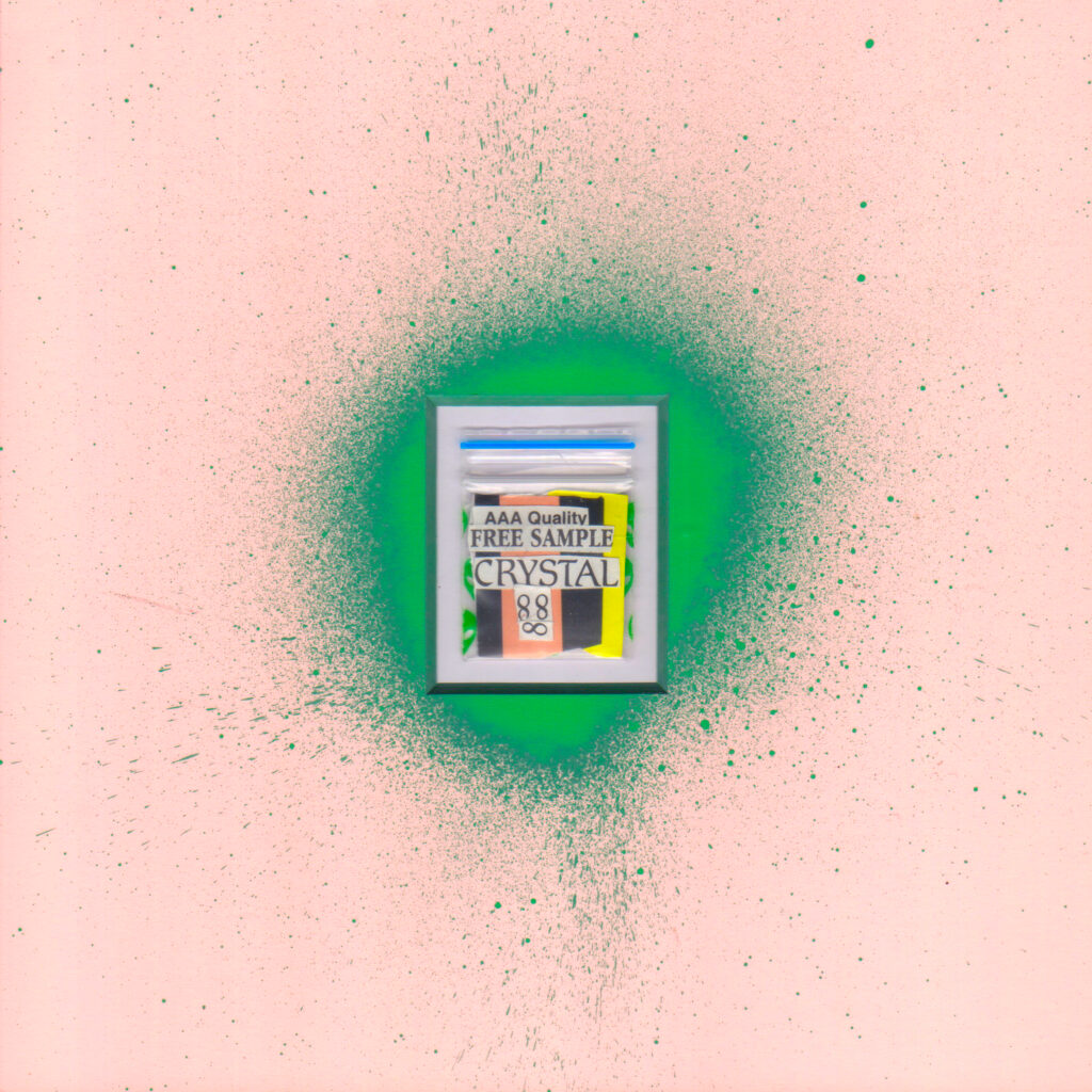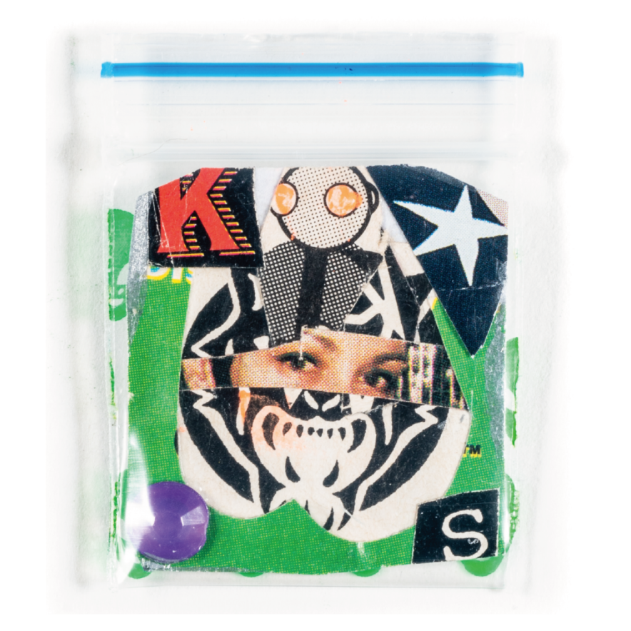 2019年、メルボルン滞在中に作家が感じた活気に溢れた平和な街の印象は、その地の薬物中毒者を取り巻く環境を知ることで一変したと言います。街中で容易に手に入る吸入器具、新たなドラッグを購入するために使われる国の補助金、といった負の連鎖を目の当たりにし、やるせない気持ちとともに、その不快を払拭するよう制作に没頭。生まれたのは、現地で購入した”パゲサイズの小さなコラージュ作品シリーズでした。